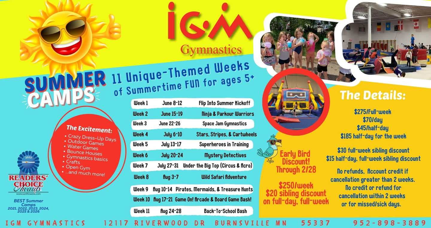 Let IGM do all of the sanitizing, cleaning, entertaining, and kid wrangling at your child's safe and exciting gymnastics birthday party.